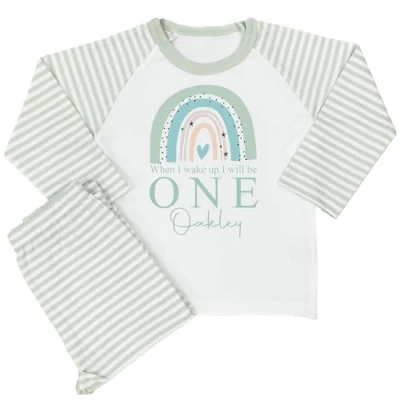 The Baby Box UK Personalised Birthday Pyjamas Boys Girls 1st PJs When I Wake Up Will Be (Sage Green Rainbow, 5 6 Years)