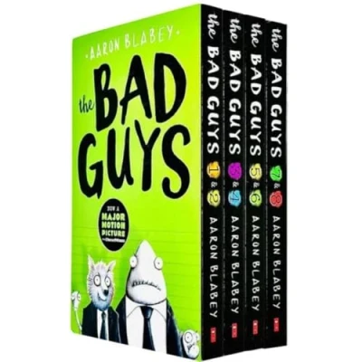 the Bad Guys Episodes 1 8 Collection 4 Books Set by Aaron Blabey (Bad Guys/Mission Unpluckable, Furball Strikes Back/Attack of Zittens, Intergalactic Gas/Alien, Do You Think He Saur Us/Superbad)