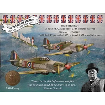 Original Penny Coin From 1940 The Year Of The Battle Of Britain. Mounted On To A 8"X6" (200x150mm) Metal Information Designed Plaque. Made With High-Quality 0.7mm Sublimation Metal Using State Of The Art Production and Printing Techniques. Rounded Corners. Punched Holes. Family Business from Manchester England. The Watermark Shown Is a Security Measure And Will Not Be On The Purchased Item.
