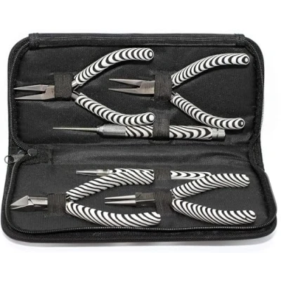 The Beadsmith 6 Piece Zebra Tool Kit, Jewelry Making Set with Pliers and Tweezers