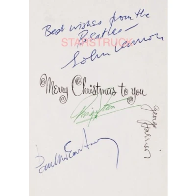The Beatles Christmas Card John Lennon Paul McCartney Ringo Starr George Harrison Signed (Pre Printed) Exclusive A4 Print