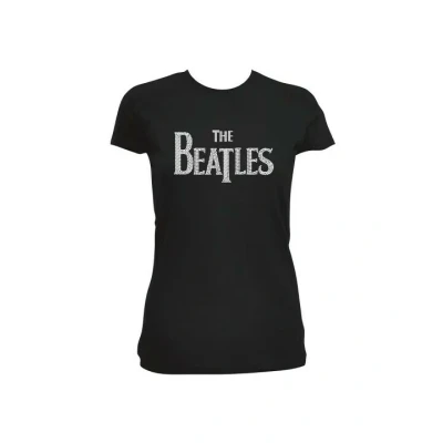 The Beatles Women's Drop T Logo & Rhinestones Slim Fit Short Sleeve Shirt, Black, Size 14 (Manufacturer Size:X Large)
