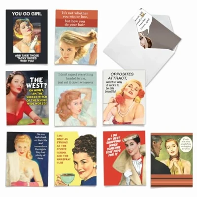 The Best Card Company M6621OCBsl Vintage Venom: 10 Assorted Blank All Occasion Note Cards Featuring an Assortment of Images with Funny and Sassy Phrases, w/White Envelopes