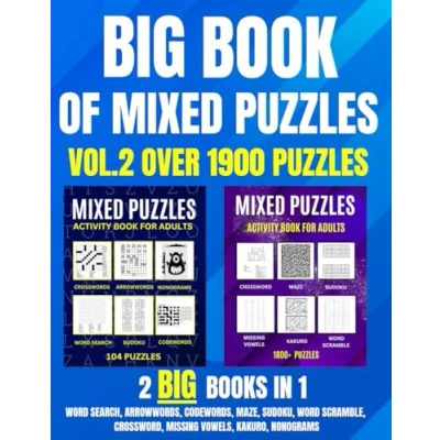 The Big Book Of Mixed Puzzles For Adults, Volume 2: Over 1900 Puzzles, Includes Maze, Sudoku, Word Search, Crossword, Kakuro, Arrowwords, Nonograms, Codewords, Missing Vowels And Scramble