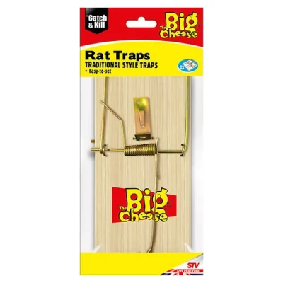 This pack of 2 wooden rat traps from The Big Cheese are easy to set, traditional style traps. Part of the Catch & Kill range from The Big Cheese, these traps are conventional spring traps and are suitable for use in most home and garden areas.