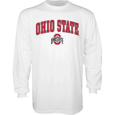 The Blue Brand NCAA Ohio State Buckeyes Mens Long Sleeve T Shirt White Arching Over, White, XX Large