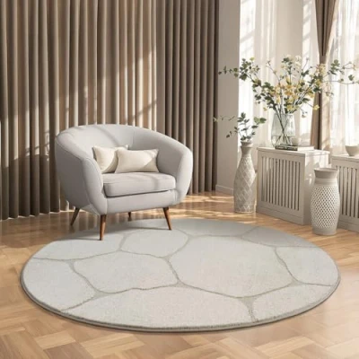 the carpet Everest, Modern Short Pile Rug, Living Room, Bedroom, with High Low Effect, 3D Density and Pleasantly Soft, Honeycomb Pattern, Cream, 160 cm, Round