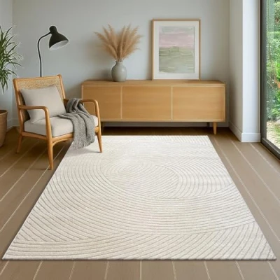 the carpet Everest Modern Short Pile Rug Living Room Bedroom with High Low Effect, 3D Density and Pleasantly Soft, Lines, Op Art, Cream, 120 x 170 cm