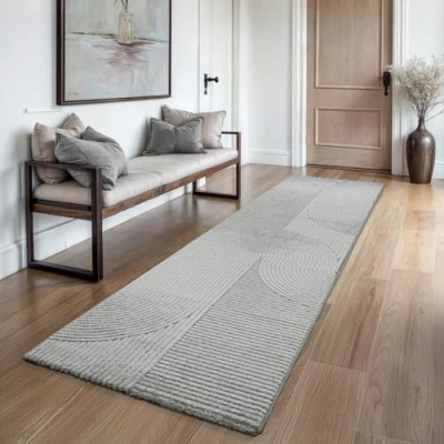 the carpet Everest Modern Short Pile Rug Living Room Bedroom with High Low Effect, 3D Density and Pleasantly Soft, Panglao Design, Grey, 80 x 300 cm