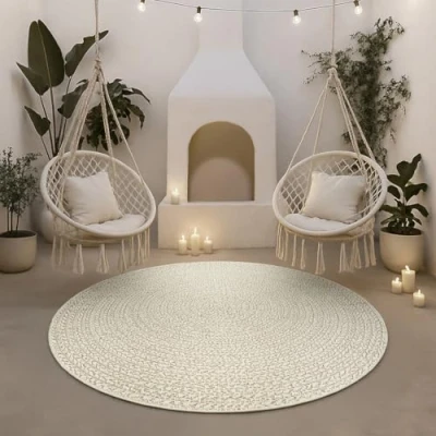 the carpet Kansas robust indoor and outdoor in natural jute look, weatherproof, suitable for patio garden, Cream, ca. 80 cm Rund