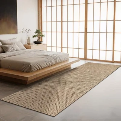 the carpet Kansas robust indoor and outdoor in natural jute look, weatherproof, suitable for patio garden, rhombus, approx. 60 x 180 cm