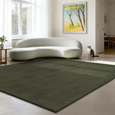 the carpet Relax Cuddly Short Pile Rug, Non Slip Underside, Washable up to 30 Degrees, Super Soft, Fur Look, Green, 240 x cm Square