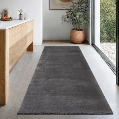 the carpet Relax Rug, Modern, Fluffy, Short Pile, Non Slip Underside, Washable up to 30C, Super Soft, Fur Look, Anthracite, 80 x 300 cm