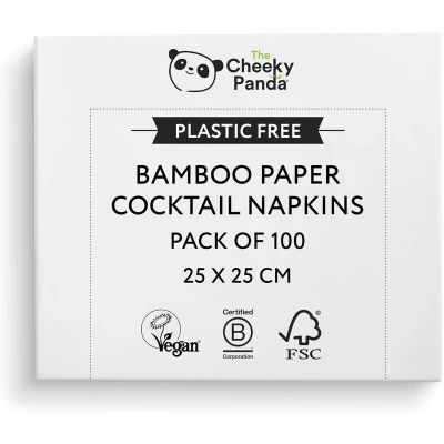 The Cheeky Panda Bamboo Paper Disposable Napkins Pack of 100 White Cocktail 25 x 25cm 2 Ply Serviettes (Package may vary)