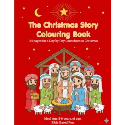 The Christmas Story Advent Colouring Book: 24 Pages for a day to Countdown Christmas, Bible Based fun, ideal age 3 6