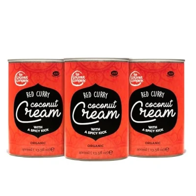 The Coconut Company Organic Curry Sauce Perfect for pouring over vegetables, noodles or your favourite dish, Spicy Taste, 400ml (Red Sauce, Pack of 3)