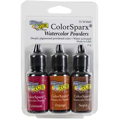 Color Sparks." A microfine watercolour pigment powder." Either sprinkle and spritz with water for a watercolour background or use with modelling pastes, gels, creams and paints (clear and light-colours only) to tint or change colour." These deeply pigmented powdered colors are water activated and great for use with all types of wet media including: water, paint, modelling paste, gel media, collage and everything in between. TCW9060 TCW9060 MPN TCW9060