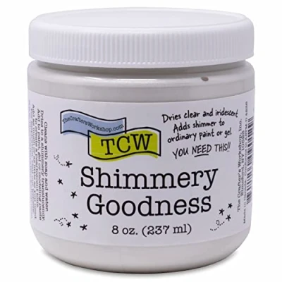 Shimmery Goodness 8 oz. (237ml). Pearlescent shimmering medium. Use straight out of the jar with either a paintbrush, or scrape through a stencil with a palette knife. You can also add shimmer to your favorite TCW gel, gesso, modeling texture paste or heavy-body acrylic paint by mixing this in. Ideal for adding wintery texture like snow or ice. TCW9012 TCW9012 TCW9012 MPN TCW9012