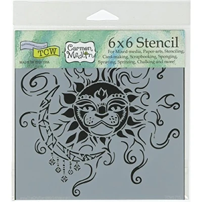 Sun and Moon 6x6 inch Stencil by Carmen Medlin. Beautiful templates & stencils for Scrapbooking, Cardmaking, Art Journals, Mixed-Media, Collages, Paper Arts, Surface Design, Quilting, Stenciling, Home decor and more! TCW671S TCW671S TCW671S MPN TCW671S