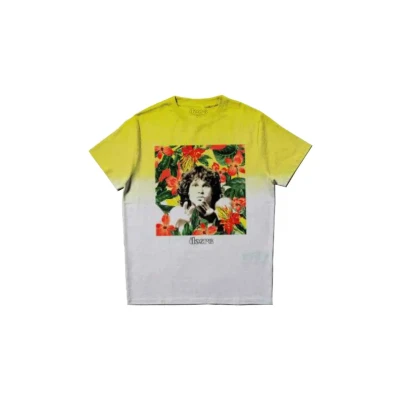 The Doors T Shirt Jim Morrison Floral Square Official Unisex Dye Wash Yellow S