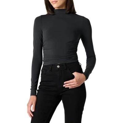 Staples By The Drop Elevate your basics with this timeless wardrobe staple. Easy to dress up or down, day to night. This top has a length of 20'/50.1 cm in a size XS and 23.5"/60 cm in a size XXL Snug-Fit: fitted, worn close to the body. Lightweight comfort stretch knit fabrication. Flattering ruching at sides High neckline