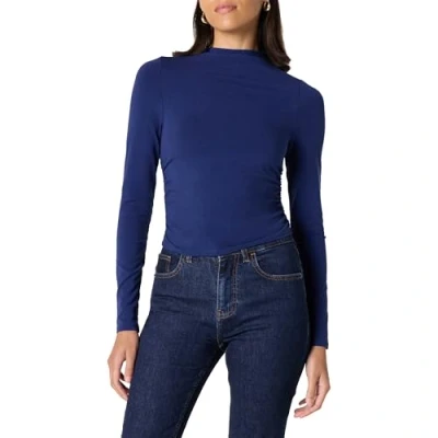 The Drop Ebony Mock Neck Long Sleeve Top Shirts, Navy, XXS