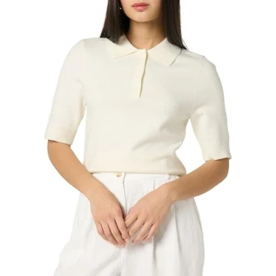 The Drop Gero Short Sleeve Splitneck Polo Sweater Tee Pullover, Ivory, L