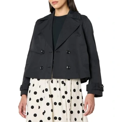 The Drop Mara Cropped Trench Coats, Black, S