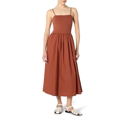 The Drop Robyn Mixed Media Spaghetti Strap Midi Dress, Burnt Henna, XS