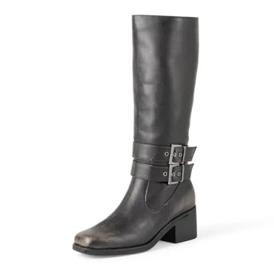 The Drop Sage Tall Biker Boot with Buckles, Distressed Cognac, 6 UK