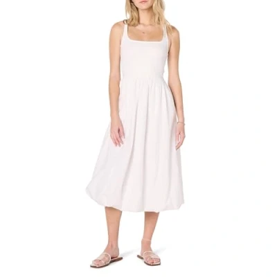 The Drop Tina Scoop Neck Mixed Media Bubble Hem Midi Dress, White, XXL