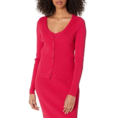 The Drop Women's Anya Fitted Rib Cardigan Sweater, Candy Apple Red, M