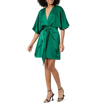 The Drop Women's Estelle Deep V Neck Front Tie Mini Dress, Malachite Green, L