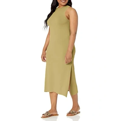 The Drop Women's Gabriela High Neck Cut In A Line Side Slit Maxi Sweater Dress, Olive Oil, L