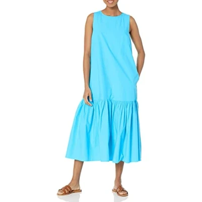 The Drop Women's Ilana Loose Sleeveless Wide hem Poplin Maxi Dress, Ocean Blue, XXS