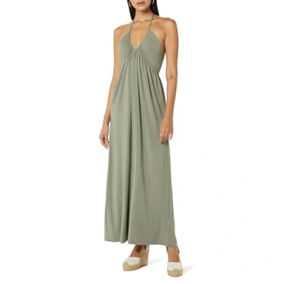 The Drop Women's Kapri Gathered Halter Dress, Vetiver Green, L