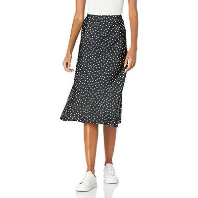 The Drop Women's Maya Silky Slip Skirt, Black/White Polka Dot Print, S