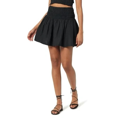 The Drop Women's Rosalia Smocked Waist Mini Skirt, Black, XXS
