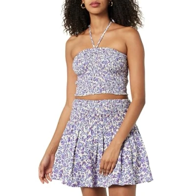 The Drop Women's Rosita Cropped Smocked Halter Top, Purple Paisley Print, XXL