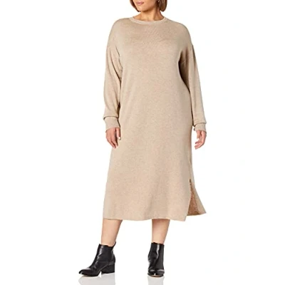 The Drop Women's Suki Rib Midi V Back Sweater Dress, Heather Sand, S