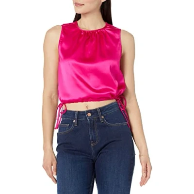 The Drop Women's Tanya Shirred Neck Bubble Tank Hot Pink, M