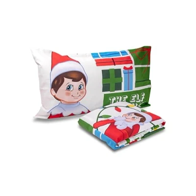 The Elf On Shelf Single Bed Sheet Set, Top Sheet, Fitted Pillowcase, 100% Cotton, Christmas, Official Product