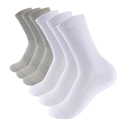 Premium Combed Cotton Blend: Crafted from a high-quality fabric mix of 73% combed cotton, 18% polyester, and 8% elastodiene and 1% Elastane, these mens cushioned sports socks offer a luxuriously soft touch that is durable and breathable. The combed cotton ensures a smoother, softer fabric that feels gentle against the skin while maintaining excellent durability for everyday use. Cushioned and Striped Foot Bottom: These gents' multipack sport socks feature a thick cushioned foot bottom, providing superior comfort and shock absorption during long workdays, On the other hand, a distinct striped foot bottom, adds a touch of style while offering extra cushioning and support. Perfect for both casual wear and active use, these mens and trainer socks combine fashion with functionality. Foot Gripper and Ergonomic Y Heel for Secure Fit: Featuring a foot gripper and an ergonomic Y-shaped heel, these breathable mens sports socks are designed to stay securely in place all day long. The gripper prevents slipping inside your shoes, while the Y-shaped heel ensures a comfortable, contoured fit, offering optimal support and reducing the need for frequent adjustments. Breathable Mesh Top & Flat-toe Seam: Equipped with a breathable mesh top, these mens white sports socks promote airflow, allowing heat and moisture to escape and keeping your feet dry and cool. The flat toe seam eliminates bulky stitching, minimising the risk of irritation and making these adult multipack socks the ideal choice for a range of sports activities, including running, gym workouts, training, walking, golf, jogging, as well as all-day wear. Multipack Convenience & Machine Washable: This 6-pack of mens breathable sports socks is perfect for everyday wear, ensuring you always have a fresh pair on hand. They are machine washable, making care effortless, just toss them in with your regular laundry, and they’ll keep their softness and shape, these mens cushioned crew socks provide a flexible and secure fit.