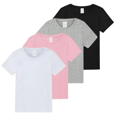 Multicoloured 4-Pack: Our set features four stylish short-sleeve girls T-shirts in a variety of assorted colours. Each pack includes four different colours, allowing you to mix, match, or coordinate with your outfits. Whether you're aiming for a coordinated look or mixing and matching, these multicoloured girls cotton t-shirts offer exceptional versatility for your wardrobe, ensuring you're prepared for any occasion. Lightweight Design for Effortless Comfort: These 100% cotton shirts for girls are thoughtfully designed to be lightweight, ensuring you move with ease and comfort. Whether you’re going about your daily tasks or engaging in more active pursuits, our kids t-shirts provide the freedom of movement you need. Quality Workmanship for Long-Lasting Wear: We take great pride in the quality workmanship that goes into crafting these girls shirts. Stitching, finishing touches, and materials are carefully selected to ensure these assorted colours shirts are durable and withstand daily wear. You can trust these girls t-shirts to maintain their integrity and look, even with frequent wear and washing. Machine washable at 40°C for easy maintenance. Tee Crew Neck Design: Our girls crew neck T-shirts feature the timeless tee crew neck design, offering a versatile and always-in-style look. The crew neck style adds a touch of timeless elegance to your outfit. Made from breathable cotton, these girls summer T-shirts ensure excellent airflow to keep you cool and comfortable. The soft hand feel enhances the wearing experience, providing comfort throughout the day. Size Range (2-13 Years): Finding the perfect fit is essential for your comfort. Our girl’s casual Short Sleeve t-shirts come in a wide range of sizes, ranging from 2 to 13 years. Whatever your kid's age, we make sure that your girl will enjoy the luxurious comfort and style of our shirts.