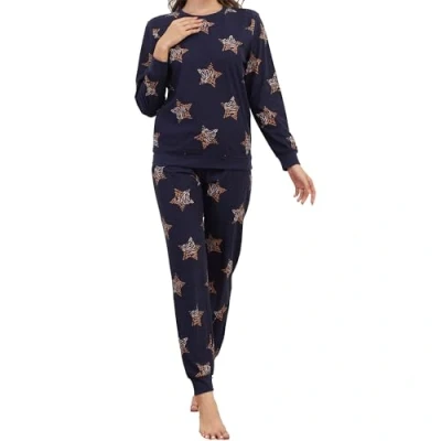 The Essentials Wardrobe Ladies LS Pyjamas Set Fake Cotton Star 12 14