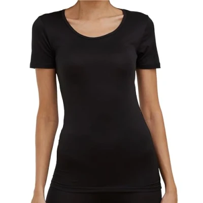 The Essentials Wardrobe Ladies TEW Short Sleeve Thermal Top Black 8 10