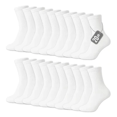 The Essentials Wardrobe Mens 20 Pack Terry Sports Socks UK 9 11/EU 43 45 White