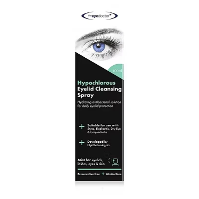 The Eye Doctor Hypochlorous Eyelid Cleansing Spray Hypoallergenic with Antibacterial Properties for Use Dry Eye, Blepharitis & MGD Preservative Alcohol Free, Contact Lens Friendly, 100ml
