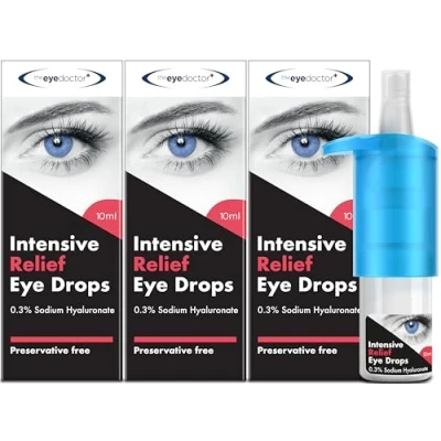 The Eye Doctor Intensive Dry Drops Preservative Free Eyedrops for Relief Gently Calms Itchy, Sore & Infected Eyes Suitable Contact Lenses with 0.3% Sodium Hyaluronate 3X 10ml