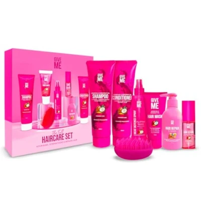 The Full Hair Care Set: Nourish, strengthen & repair hair with 7 power-fighting full-sized hair products formulated to restore dry & damaged hair in one easy set. Nutrient-Rich Shampoo & Conditioner Set & Hair Mask: Paraben-free formula with Argan & Coconut Oils and provitamin B5 enhances hair elasticity and deeply moisturizes for stronger, healthier, and hydrated hair strands. Restorative Hair Mask: Infused with Argan & Coconut Oils, this mask restores moisture to dry, damaged hair, leaving it soft, shiny, and resilient against daily wear. Repair Cream for Split Ends & Hair Serum: Nourish and repair over-styled hair with a rich mix of Argan Oil, Castor Oil, and vitamins B3 and B5, bonding split ends and restoring moisture for healthier, smoother strands. Frizz-Taming Hair Serum: Seal in moisture and fight humidity with a lightweight Argan & Coconut Oil serum, leaving hair silky smooth, tamed, and protected against frizz all day long. Heat Defence Spray & Brush: Protect your hair from heat damage up to 230°C with a blend of Argan & Coconut Oils and UV filter, ensuring safe styling with blow dryers, straighteners, and curling irons. Detangling & Smoothing Brush: Two-tier technology effortlessly detangles wet or dry hair while reducing breakage, leaving hair cuticles smooth and glossy for a healthier appearance. Perfect Gift Set for Women: Packaged in an elegantly designed gift box; buy for a loved one or simply keep for yourself! Great Christmas gift for women or a hair care gift set for teenage girls!